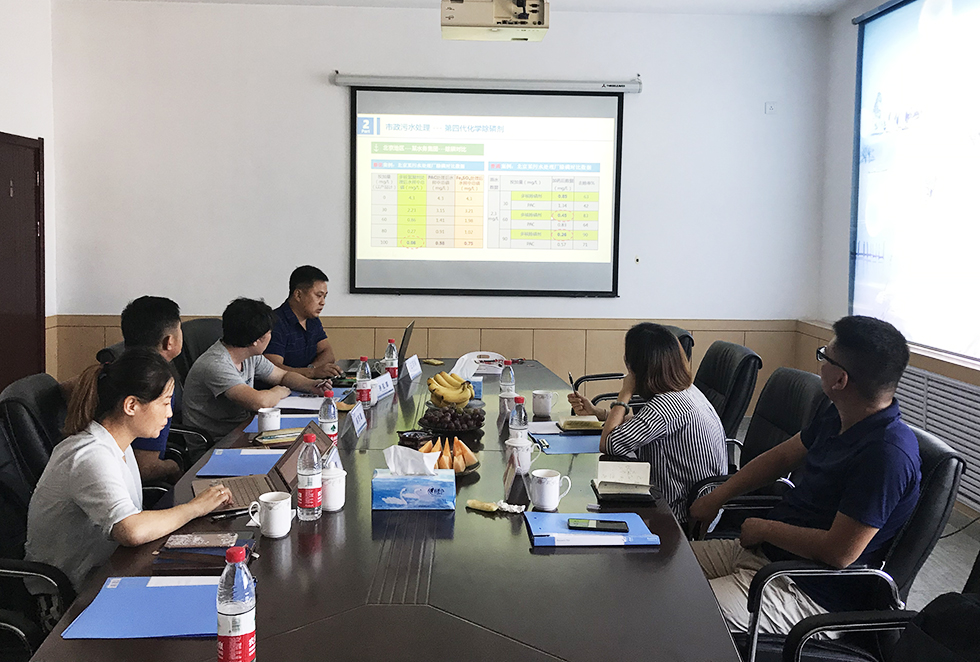 在座談會上,神美副總馬婕、楊萬章首先向兩位領導的到來表示熱烈歡迎。運營部經理王國瑞分別從公司的發展歷程、重大項目、核心專利、研發團隊、產學研合作基地、所獲獎項等方面做了詳細介紹。針對此次雙方合作的污泥深度脫水項目,王國瑞也做了詳細匯報。神美科技各級領導非常重視此次合作,特組織了頂級研發團隊,針對此項目研制了高壓帶機專用脫水藥劑,目前研發進度非常順利。兩位領導聽后對我公司的研發進度和所取得的成績給予了高度認可及贊賞,并結合自身多年的研究經驗給神美提出了寶貴意見,雙方還對下一步的工作和未來的合作模式做了深入探討。