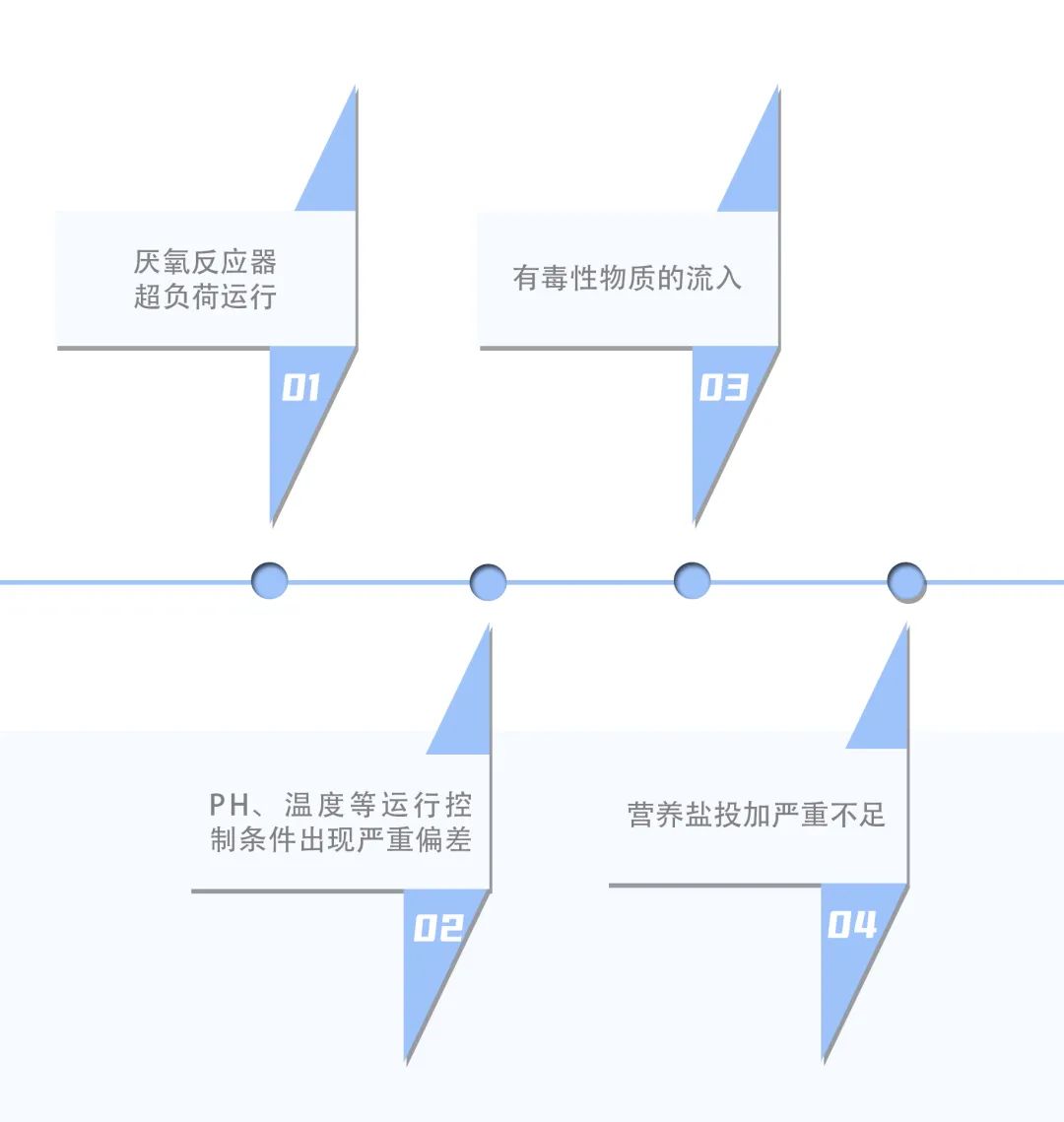 一般來說,對于以產甲烷為主要目的的厭氧過程要求pH值在6.5~8.0之間,廢水堿度偏低或運行負荷過高時,會引起反應器內揮發酸積累,導致產甲烷菌活力喪失而產酸菌大量繁殖,持續過久時,會導致產甲烷菌活力喪失殆盡而產乙酸菌大量繁殖,引起反應器系統的“酸化”。嚴重酸化發生后,反應器難以恢復至原有狀態。