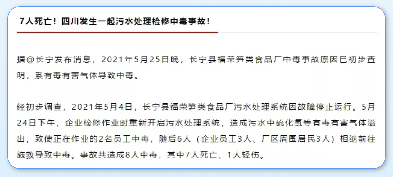 《我國污水處理廠事故統計分析與對策研究》統計了10年間47座污水處理事故,結果顯示,污水處理廠事故高發期是在5月份到7月份,這段時間發生的事故占總事故的67.5%,死亡人數占總死亡人數的69.4%,受傷人數占總受傷人數的87%。